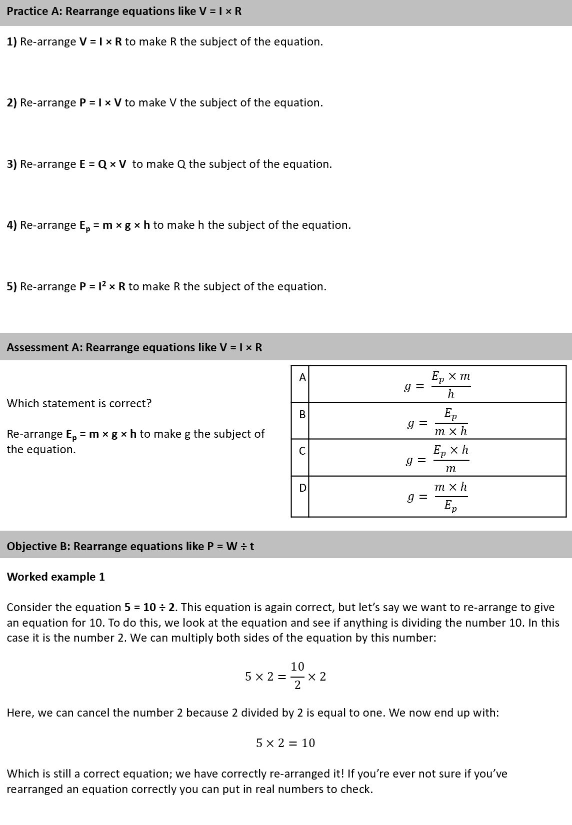 This first resource is usually how I introduce how to rearrange equations with a high prior attaining group. Different types of equations are introduced and each one is carefully modelled before giving students opportunity for independent practice.